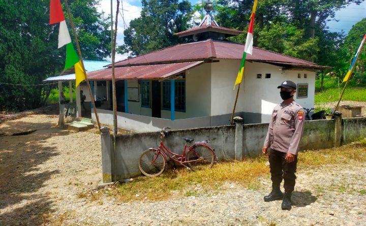 Polsek Lumar Polres Bengkayang Polda Kalimantan Barat, melaksanakan pengamanan (Pam) di masjid Al Muhtadin di Desa Belimbing Kecamatan Lumar Kabupaten Bengkayang Provinsi Kalimantan Barat, seperti yang terlihat BRIPTU RUSLAN sedang Melaksanakan Pengamanan di Masjid, Jum’at, (23/07/2021). Kapolsek Lumar Ipda SUNARDI, S.H. Mengatakan bahwa Pengamanan yang dilaksanakan ini bertujuan untuk meningkatkan keamanan pada saat proses ibadah..