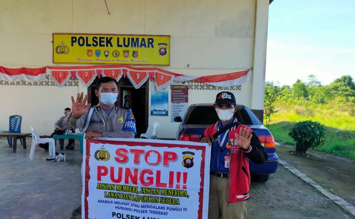 Sosialisasi dan larangan Pungli yang dilakukan oleh Kapolsek Lumar dan anggotanya setiap hari dilaksanakan, kegiatan ini bertujuan untuk mengantisipasi dan mencegah praktek Pungli yang terjadi pada masyarakat diwilayah Kec Lumar, sosialisasi ini rutin dilakukan setiap hari nya ditempat tempat keramaian masyarakat, perkantoran, dipasar pasar. Hari ini Sabtu, (29/05/2021), terlihat anggota Polsek Lumar Aiptu RUDIYANTO personil..
