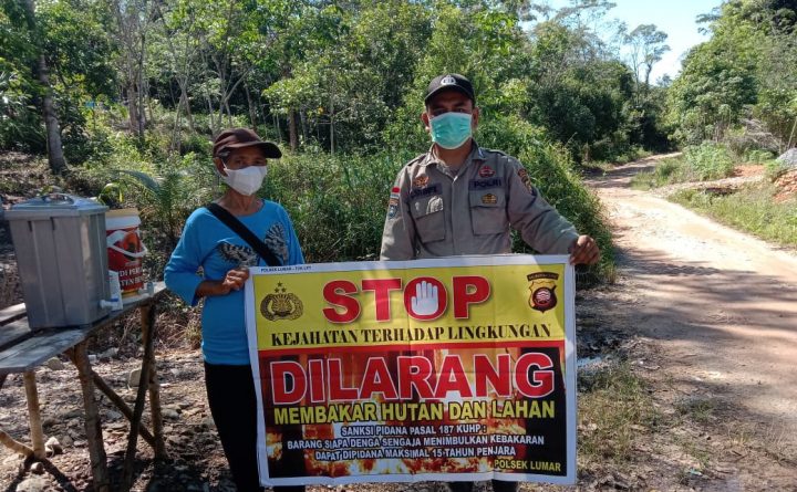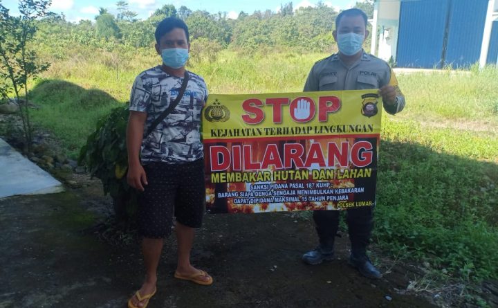 Polsek Lumar berkomitmen untuk selalu melakukan pencegahan terjadinya kebakaran hutan dan lahan (karhutla) diwilayah hukumnya, kegiatan himbauan dan sosialisasi tersebut dilakukan oleh Kapolsek dan para Bhabinkamtibmasnya setiap hari dengan menggunakan banner, seperti yang terlihat pagi ini personil Polsek Lumar BRIPTU SUSIANTO Selasa, (01/06/2021). Para personel Bhabinkamtibmas Polsek Lumar akan selalu mengajak warga desa binaannya bersama..