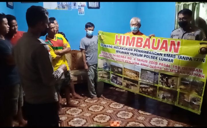 Bukti dan wujud, keseriusan & kepedulian Polres Bengkayang dan Polsek jajarannya untuk melakukan larangan aktifitas Penambangan Emas Tanpa Ijin (PETI) di wilayah Kabupaten Bengkayang. himbauan larangan dan peringatan tersebut akan selalu dilakukan mengingat cukup maraknya pertambangan emas tanpa ijin. Hari ini, Senin, (31/05/2021) Kapolsek Lumar turun langsung bersama anggotanya menemui warga dirumahnya di dusun sungai..