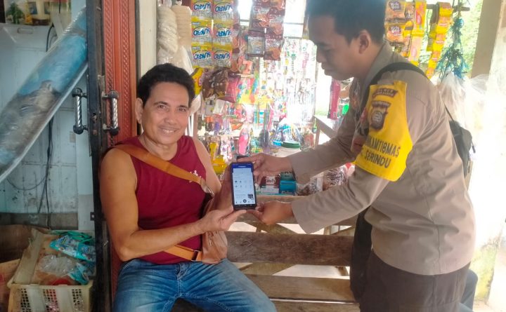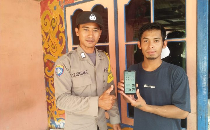 Tribratanews.polri.co.id-Bhabinkamtibmas Polsek Monterado Polres Bengkayang Polda Kalbar Bripka Gustian lakukan sambang sekaligus sosialisasikan aplikasi Super App Presisi ke warga binaan, Kamis (26/01/2023). Lewat aplikasi Polri Super App ini, masyarakat dapat lebih mudah mendapatkan informasi berbagai layanan kepolisian. Tampak Bhabinkamtibmas Desa Beringin Baru Bripka Gustian saat sambang mengarahkan warga binaan cara mengakses aplikasi Super App Presisi..