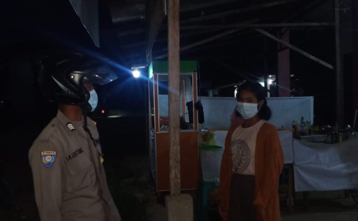 polres bengkayang,Polsek Monterado- Dalam rangka mencegah ganguan kamtibmas dan pencegahan penyebaran virus Covid19/Corona dengan rutin Personel Patroli Gelar Patroli malam sekaligus himbauan Protokol Kesehatan 5M kepada masyarakat Kec. Monterado. Dengan menggunakan kendaraan roda dua inventaris Personel Patroli Polsek Monterado Bripka Abui dan anggota piket jaga menggelar Patroli di seputaran pasar Desa Monterado Kec. Monterado, Rabu(27/10)malam…