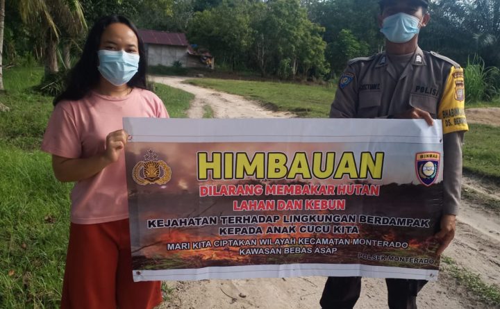 Polres Bengkayang, Polsek Monterado-Bhabinkamtibmas Polsek Monterado Brigadir Gustian dalam rangka mencegah terjadinya kebakaran hutan dan lahan (Karhutla) membentangkan banner berisikan himbauan larangan membakar hutan dan lahan. Sosialisasi cegah Karhutla disampaikan Brigadir Gustian menggunakan media seperti spanduk, poster, banner, stiker dan alat peraga lainnya yang berisi konten pencegahan karhutla agar dapat dipahami warga binaan yang di..