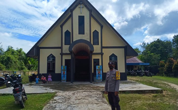 Polres Bengkayang, Polsek Monterado-Di hari minggu Personel Polsek Monterado rutin lakukan pengamanan kegiatan Ibadah Minggu umat nasrani dan Disiplinkan Protokol Kesehatan Covid19. Dengan kehadiran Personel Polsek Monterado ini bertujuan agar umat nasrani yang sedang melaksanakan kegiatan ibadah di Gereja GKE Efrata Monterado merasa aman dan nyaman serta terhindar dari wabah Covid19. Tampak Personel Polsek Monterado..
