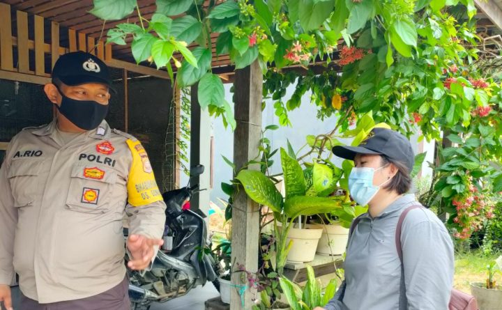 Polres Bengkayang, Polsek Monterado- Bhabinkamtibmas Polsek Monterado Brigadir Albertus Rio tidak henti-hentinya untuk terus mengimbau Protokol Kesehatan Covid19 kepada warga binaan di Desa Sendoreng Kec. Monterado. Bhabinkamtibmas Polsek Monterado Brigadir Albertus Rio dengan humanis memberikan himbuan agar warga selalu menerapkan Protokol Kesehatan 5M saat beraktivitas di luar rumah, Senin(01/11/2021). “Tetap dukung Pemerintah selalu pada Protokol..