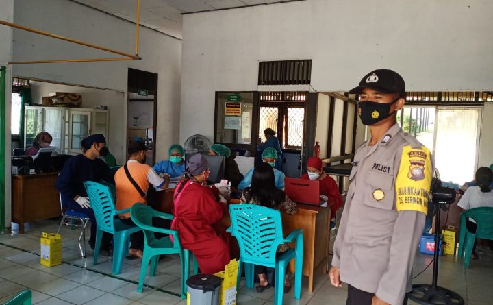polres bengkayang,polsek Monterado- Personel Polsek Monterado lakukan PAM dan monitoring pelaksanaan penyuntikan Vaksin Covid19 di Puskesmas Monterado. Tampak Personel Polsek Monterado Brigadir Gustian melaksanakan kegiatan monitoring pengamanan penyuntikan vaksin Covid19 yang dilaksanakan di Puskesmas Monterado kepada masyarakat umum di wilayah Kecamatan Monterado Kabupaten Bengkayang, Senin (09/08/2021). Kapolsek Monterado IPDA Kusnandar, mengatakan bahwa pihaknya menugaskan anggotanya..