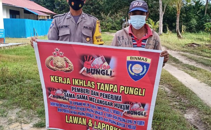 Polres Bengkayang – Polsek Monterado. Bhabinkamtibmas Polsek Monterado Brigpol Gustian, melaksanakan himbauan dalam rangka larangan dan laporkan pungutan liar (Pungli) di wilayah Hukum Polsek Monterado, Kamis(12/08/2021) siang. Dengan alat peraga berupa banner atau spanduk, Bhabinkamtibmas Brigadir Gustian menginformasikan ke warga masyarakat wilkum Polsek Monterado agar lawan dan laporkan terkait pungutan liar (Pungli). Kapolsek Monterado IPDA..