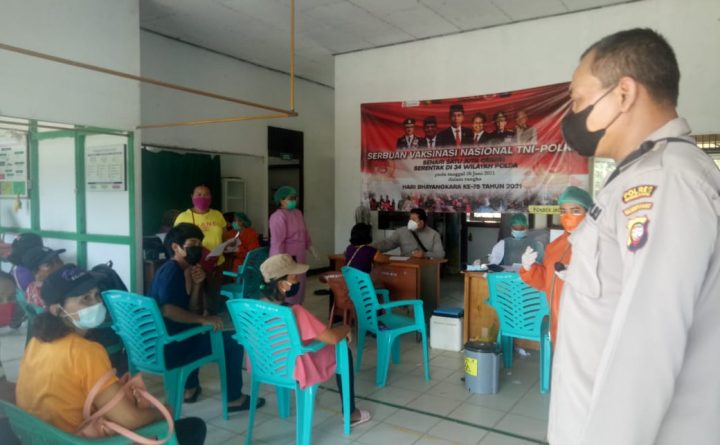 Polres Bengkayang, Polsek Monterado- Kanit Sabhara Polsek Monterado bersama Bripka Hengki.MD hadir di Puskesmas Kecamatan Monterado Kabupaten Bengkayang lakukan imbauan Protokol Kesehatan 5M ke warga yang terdaftar untuk menerima Vaksin Covid19 Senin (26/07)pagi. Dalam jumpanya tersebut Kanit Sabhara menghimbau kepada masyarakat bahwa vaksin Covid19 aman dan halal, sehingga masyarakat diharapkan tidak perlu khawatir. “Pemerintah telah..