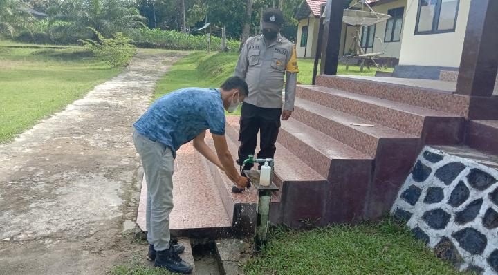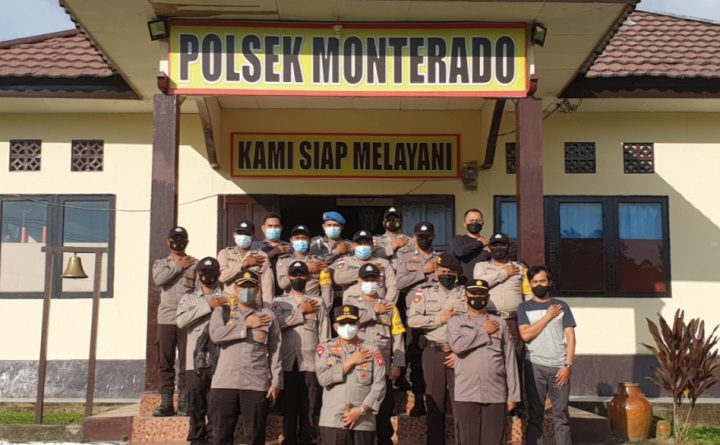 Polres Bengkayang – Polsek Monterado. Polsek Monterado menerapkan wajib Protokol Kesehatan Covid19 kepada personil maupun siapa saja yang berkunjung ke Mapolsek Monterado. Seperti terlihat pada Kamis (17/06/2021) siang, personel Polsek Monterado Bripka Abui mewajibkan kepada salah satu pengunjung yang mendatangi Mako Polsek Monterado. Kapolsek IPDA Kusnandar menambahkan Penerapan Protokol Kesehatan ini berlaku kepada Personel Polsek..