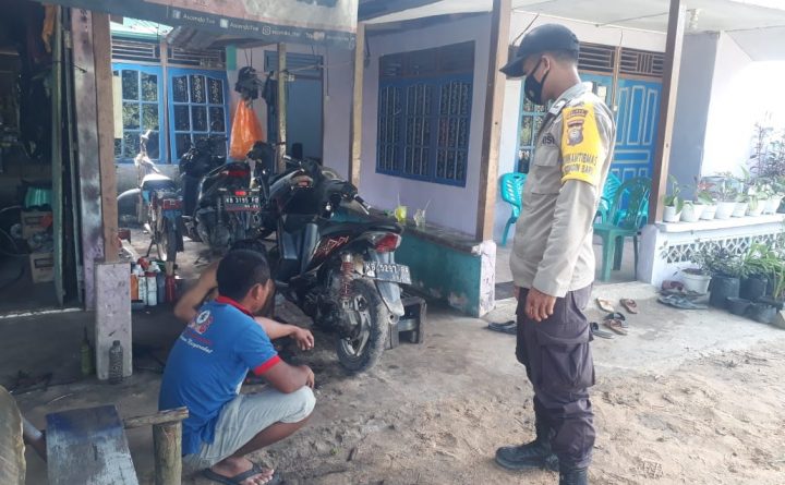 Polres Bengkayang, Polsek Monterado-Dalam rangka mewujudkan situasi Kamtibmas yang aman dan konfusif di wilayah Kec. Monterado, Personel Patroli Brigpol Gustian melakukan kegiatan Patroli siang, Rabu (16/06/2021). Saat patroli siang, Personel Patroli Brigpol Gustian menjumpai warga di sebuah tempat Bengkel Sepeda Motor yang terletak di Dusun Karya Desa Monterado guna menyampaikan pesan kamtibmas dan himbauan Protokol..