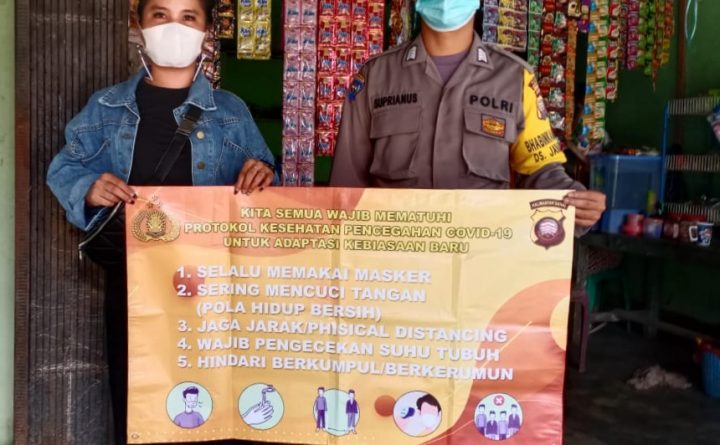 Polres Bengkayang, Polsek Monterado- Bhabinkamtibmas Desa Jahandung Bripka Suprianus gunakan banner berikan Himbauan 5M ke warga binaan di Desa Jahandung guna mencegah penyebaran Covid-19, Selasa (15/06/2021). Melalui kegiatan imbauan 5M Bhabinkamtibmas Bripka Suprianus juga mengajak warga binaan untuk menciptakan situasi kamtibmas yang kondusif dan selalu mematuhi protokol kesehatan 5 M. “Tetap patuhi Protokol Kesehatan 5M..