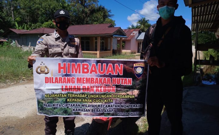 Polres Bengkayang – Himbauan Pencegahan terjadinya Karhutla selalu disampaikan kepada masyarakat dengan humanis oleh Bhabinkamtibmas Polsek Monterado Brigadir I.Nyoman Gustian gunakan Alat Peraga Banner kecil. Seperti yang dilakukan hari ini, Selasa tanggal 08 Juni 2021 siang kepada salah satu warga binaan saat berkunjung ke Desa Beringin Baru Kec. Monterado Kab. Bengkayang. Kapolsek Monterado IPDA Kusnandar..