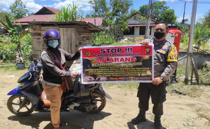 Polres Bengkayang – Polsek Samalantan. Guna mencegah terjadinya Karhutla diwilayah hukumnya, Polsek Samalantan Polres Bengkayang terus lakukan kegiatan sosialisasi pencegahan kebakaran hutan dan lahan. Seperti yang terlihat pada Senin (22/11/2021) pagi, Anggota Polsek Samalantan, Aipda Erixon Simanjuntak lakukan sosialisasi karhutla bersama warga Desa Samalantan Kecamatan Samalantan Kabupaten Bengkayang. Dengan menggunakan spanduk, masyarakat diimbau untuk tidak..