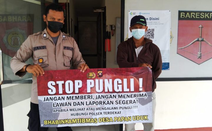 Polres Bengkayang – Polsek Samalantan. Polsek Samalantan Polres Bengkayang tak henti-hentinya melakukan upaya Preemtif untuk Stop Pungutan Liar (Pungli) dengan sosialisasi atau kampanye kepada seluruh elemen masyarakat. Seperti yang dilakukan Bripka Ferry Stepenson, guna mewujudkan pelayanan Polsek Samalantan bebas pungli, Ia sosialisasi serta edukasi masyarakat terkait pentingnya tindakan Stop Pungli lewat spanduk, Selasa (23/11/2021) pagi…