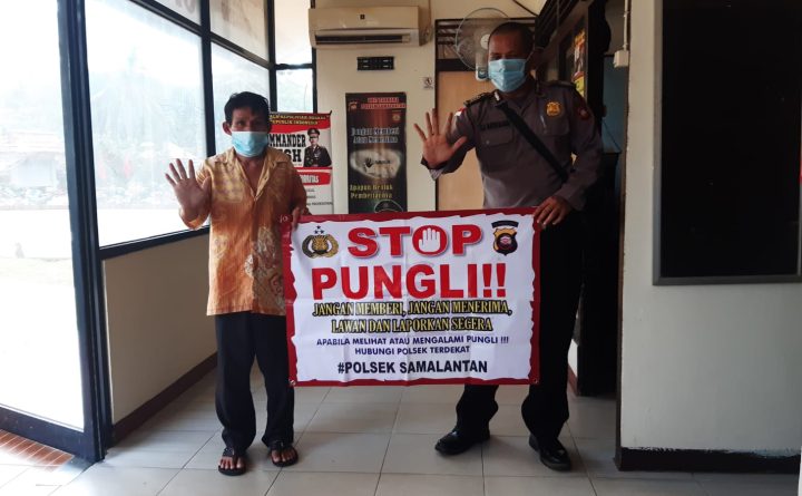 Polres Bengkayang – Polsek Samalantan. Polsek Samalantan Polres Bengkayang tak henti-hentinya melakukan upaya Preemtif untuk Stop Pungutan Liar (Pungli) dengan sosialisasi atau kampanye kepada seluruh elemen masyarakat. Seperti yang dilakukan Brigpol Junaidi kepada warga, dengan menggunakan media spanduk, disampaikan edukasi serta pemahaman terkait larangan memberi atau menerima pungutan liar, Senin (22/11/2021) siang. Kapolsek Samalantan, Ipda..