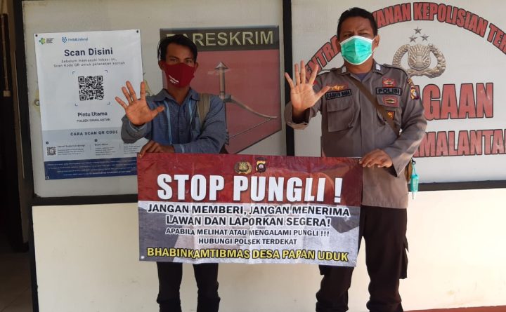 Polres Bengkayang – Polsek Samalantan. Polsek Samalantan Polres Bengkayang tak henti-hentinya melakukan upaya Preemtif untuk Stop Pungutan Liar (Pungli) dengan sosialisasi atau kampanye kepada seluruh elemen masyarakat. Seperti pelaksanaan kegiatan oleh Kasi Humas Polsek Samalantan, Ipda Lilik Aruwan yang sosialisasikan pelayanan Polsek Samalantan bebas dari pungutan liar, Rabu (3/11/2021) pagi. Menurut Kapolsek Samalantan, Ipda Nusantara..
