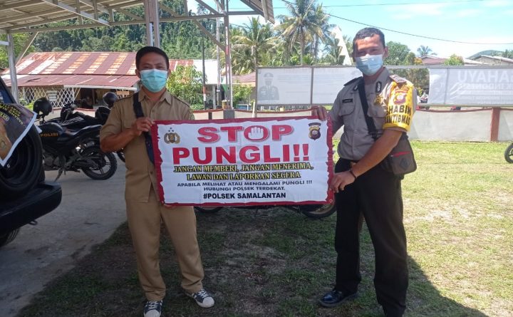 Polres Bengkayang – Polsek Samalantan. Polsek Samalantan Polres Bengkayang tak henti-hentinya melakukan upaya Preemtif untuk Stop Pungutan Liar (Pungli) dengan sosialisasi atau kampanye kepada seluruh elemen masyarakat. Seperti yang dilakukan Bripda Yordanus kepada warga dengan gunakan media spanduk, disampaikan edukasi serta pemahaman larangan memberi atau menerima pungutan liar, Selasa (28/9/2021) siang. Ditemui, Kapolsek Samalantan, Ipda..
