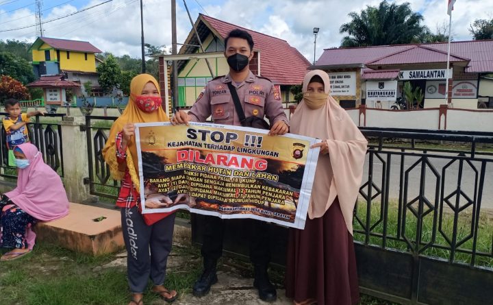 Polres Bengkayang – Polsek Samalantan. Dalam rangka pencegahan kebakaran hutan dan lahan (karhutla), Polsek Samalantan Polres Bengkayang terus tingkatkan kegiatan sosialisasi maupun edukasi kepada masyarakat. Seperti yang dilakukan Anggota Polsek Samalantan, Briptu Yehezkiel pada Senin 27 September 2021 siang, menyosialisasikan serta ajakan untuk tidak lakukan pembakaran hutan dan lahan. Menurut Kapolsek Samalantan, Ipda Nusantara Sembiring,..