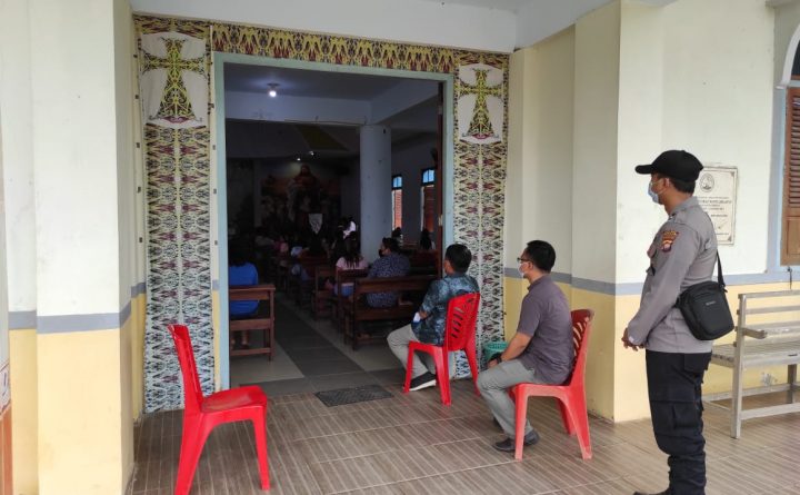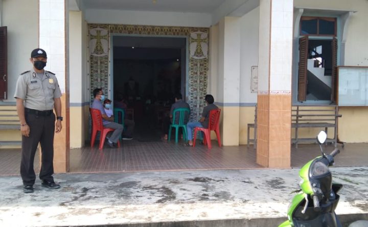 Polres Bengkayang – Polsek Samalantan. Anggota Polsek Samalantan Polres Bengkayang melaksanakan tugas pengamanan di Gereja Kalimantan Evangelis (GKE) Desa Samalantan Kecamatan Samalantan, Bengkayang. Minggu (27/6/2021) pagi Sebagai pelindung pengayom dan pelayanan masyarakat, sudah kewajiban melaksanakan pengamanan di Gereja sebagai bentuk pelayanan masyarakat khususnya warga nasrani yang beribadah. Ini bertujuan untuk memberikan rasa aman dan nyaman..