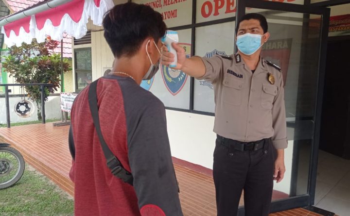 Polres Bengkayang – Polsek Samalantan. Anggota Polsek Samalantan Polres Bengkayang, Bripka Suhermanus terapkan protokol kesehatan covid 19 di area Mako (markas komando) nya pada Rabu tanggal 7 Juli 2021 pagi. Hal itu digelar dalam rangka meminimalisir penyebaran virus corona dengan cara mengecek setiap warga yang akan memasuki kantor Polsek Samalantan dengan penerapan protokol kesehatan covid..