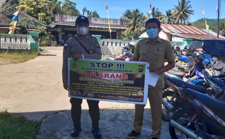Polres Bengkayang – Polsek Samalantan. Dalam rangka pencegahan kebakaran hutan dan lahan (karhutla), Polsek Samalantan Polres Bengkayang terus tingkatkan kegiatan sosialisasi serta edukasi kemasyarakat. Salah satu caranya yakni dengan bentangkan spanduk yang isinya larangan, ajakan atau imbauan untuk mencegah bersama serta tidak melakukan pembakaran hutan dan lahan. Seperti yang dilakukan Anggota Polsek Samalantan, Brigadir Junaidi..