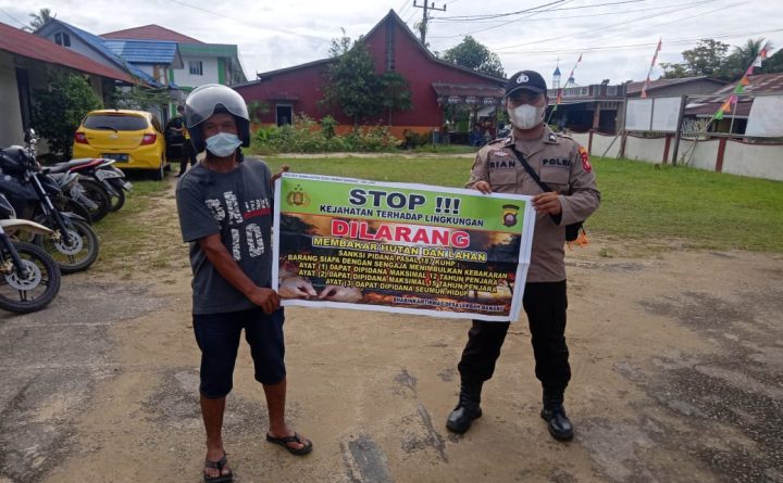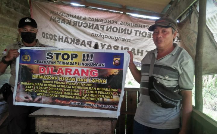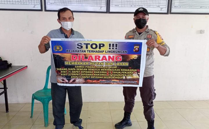 Polres Bengkayang – Polsek Samalantan. Dalam rangka pencegahan kebakaran hutan dan lahan (karhutla), Polsek Samalantan Polres Bengkayang terus tingkatkan kegiatan sosialisasi serta edukasi kemasyarakat. Salah satu caranya yakni dengan bentangkan spanduk yang isinya larangan, ajakan serta imbauan untuk mencegah bersama agar tidak terjadi pembakaran hutan dan lahan. Seperti yang dilakukan Bhabinkamtibmas Polsek Samalantan, Aipda Zakarias..