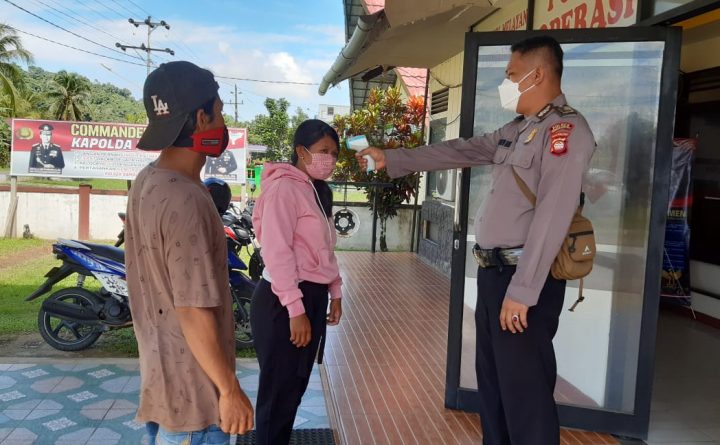 Polres Bengkayang – Polsek Samalantan. Mencegah penyebaran virus corona dikantornya, kantor Polsek Samalantan Polres Bengkayang perketat pemeriksaan prokes kepada siapa saja yang akan memasuki markas komandonya. Serangkaian prokes pun dilakukan, diantaranya wajib menggunakan masker, mencuci tangan serta pengecekan suhu tubuh. Seperti yang diterapkan piket jaga Mapolsek Samalantan kepada masyarakat yang berkunjung, Minggu (20/6/2021) pagi. Selain..