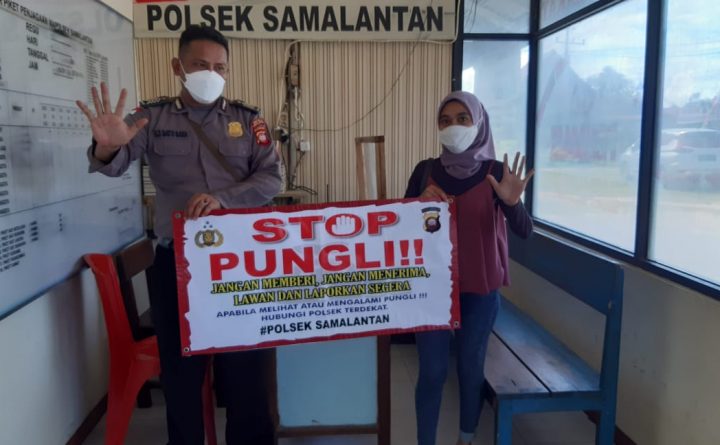Polres Bengkayang – Polsek Samalantan. Polsek Samalantan Polres Bengkayang tak henti-hentinya melakukan upaya Preemtif untuk Stop Pungutan Liar (Pungli) dengan sosialisasi atau kampanye kepada seluruh elemen masyarakat. Seperti yang dilakukan Bripka Ferry Stepenson guna mewujudkan pelayanan Polsek Samalantan bebas pungli, Ia sosialisasikan serta edukasi masyarakat terkait pentingnya tindakan Stop Pungli lewat spanduk, Kamis (17/6/2021) pagi…
