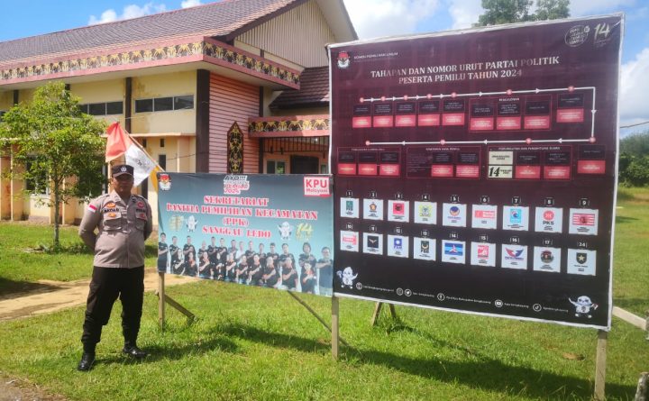 Sanggau Ledo, Bengkayang – Personil Kepolisian Sektor Sanggau Ledo Polres Bengkayang, Aipda Bayu Dwinoviantara, S.H., melaksanakan kegiatan patroli dialogis di kantor Panwascam dan kantor PPK yang berlokasi di Dusun Sanggau Kota Desa Lembang Kecamatan Sanggau Ledo Kabupaten Bengkayang, Minggu (31/12/2023). Kegiatan patroli dialogis ini dilaksanakan dengan tujuan untuk berkomunikasi langsung dengan petugas di dua lembaga..