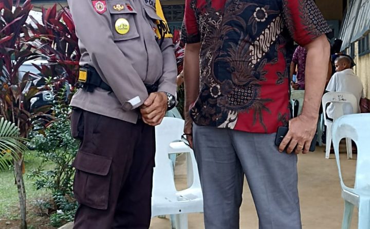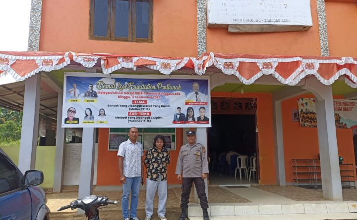 Polres Bengkayang – Polsek Sanggau Ledo – Kepolisian Sektor Sanggau Ledo kembali melaksanakan giat Minggu Kasih dengan memberikan pelayanan dan pengamanan di gereja dalam rangka pelaksanaan Ibadah Kebaktian Minggu, Minggu (22/10/2023). Bhabinkamtibmas Desa Lembang Aipda Syahroni bersama Brigadir Dionisius melaksanakan pengamanan di Gereja GPIBI Jemaat Efrata Sanggau Ledo yang beralamat di Dusun Sanggau Kota Desa..