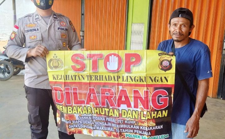 Tribratanews.polri.go.id Polsek Sanggau Ledo Polres Bengkayang.Mencegah dan mengantisipasi kebakaran hutan dan lahan, Anggota Bhabinkamtibmas Polsek Sanggau Ledo sosialisasikan kebakaran hutan dan lahan (29/07). Antisipasi kebakaran hutan dan lahan, anggota bhabikamtibmas Polsek Sanggau Ledo di sebar di masing-masing Desa binaan untuk memberikan himbauan secara rutin dan berkelanjutan dengan harapan Masyarakat Kecamatan Sanggau Ledo tidak membuka lahan..