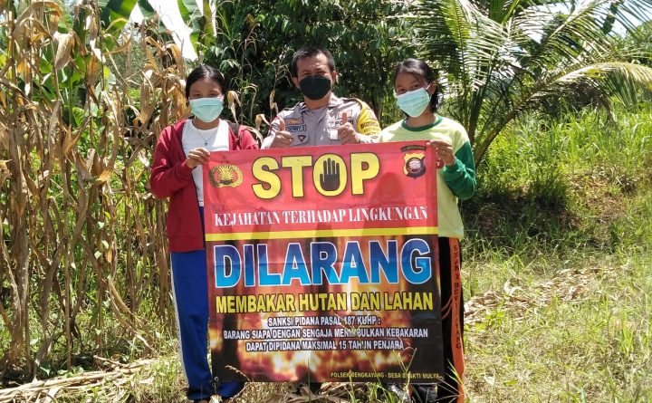 Dalam upaya meminimalisir kebakaran hutan dan lahan Karhutla di wilayah binaanya. Bhabinkamtibmas Polsek Bangkayang Kota Jajaran Polres Bengkayang. Aipda Deni melakukan sosialisasi dan edukasi karhutla bersama warga, di Desa Bhakti Mulya Kec.Bengkayang Kab. Bengkayang, Sabtu (20/11/2021). Peran Bhabinkamtibmas bersama warganya sosialisasi dan membentangkan banner, sekaligus menghimbau warga tidak melakukan pembakaran hutan dan lahan. Bhabinkamtibmas menyampaikan..