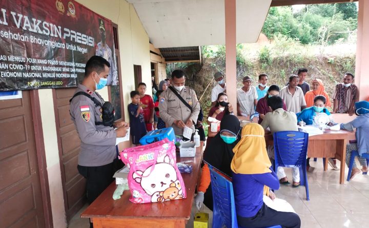 Polres Bengkayang – Polsek Sanggau Ledo Polres Bengkayang Polda Kalbar mempercepat program vaksin Covid-19 terutama bagi warga melalui program vaksinasi natal 2021. “Kegiatan ini digelar untuk mempercepat capaian vaksinasi warga. Kami juga melibatkan para tenaga kesehatan puskesmas Sanggau Ledo sebagai vaksinator,” kata Kapolres Bengkayang AKBP Arif Agung Winarto, S.I.K., melalui Kapolsek Sanggau Ledo Ipda Dwiyanto..