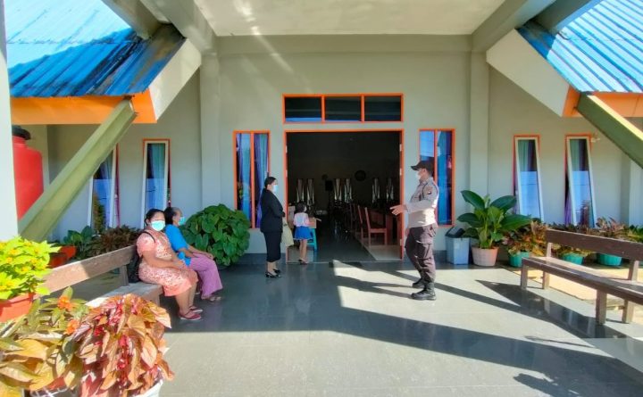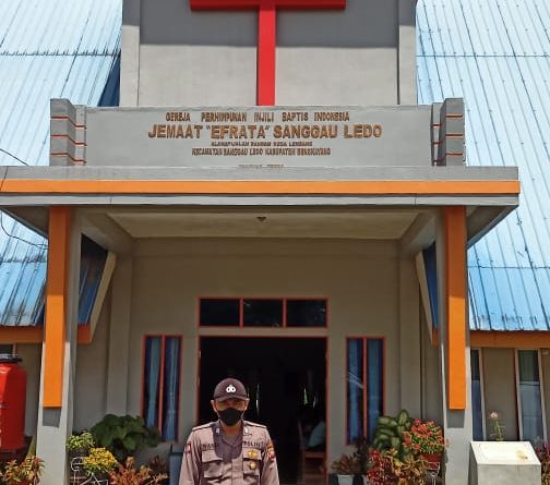 Untuk meningkatkan rasa aman dan nyaman di tengah masyarakat, Kaspkt Sabhara Polsek Sanggau ledo Bripka Wandi pimpin anggotanya melaksanakan pengamanan (Pam) ibadah Minggu di Gereja Effrata Desa Lembang Kec.Sanggau Ledo Kab. Bengkayang. Minggu (03/10/2021). Pengamanan yang dilaksanakan anggota bertujuan untuk meningkatkan keamanan pada saat pelaksanaan ibadah Minggu berlangsung, dengan menerapkan Protokol Kesehatan dan Adaptasi kebiasaan..