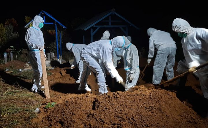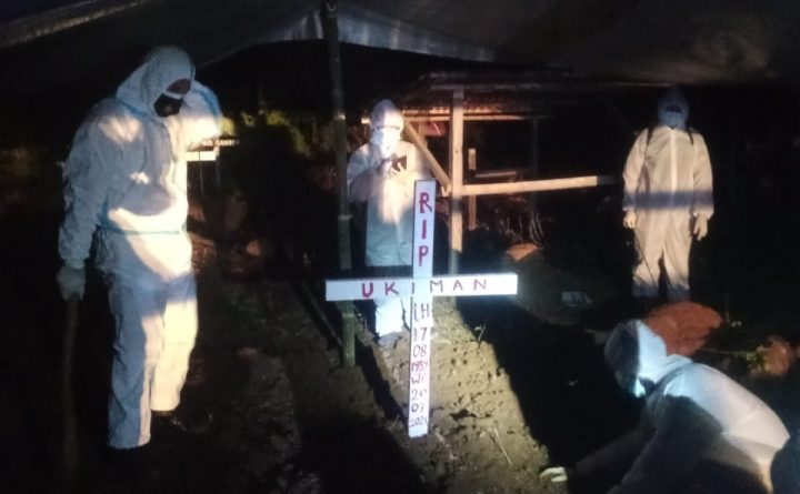Warga di Desa Sinar Tebudak, Kecamatan Tujuh Belas, Kabupaten Bengkayang, seorang laki-laki meninggal dunia berusia 62 tahun, yang meninggal akibat terserang COVID-19 , Kamis (22/7/2021). Melihat kondisi tersebut, Kapolsek Sanggau Ledo, Ipda Dwiyanto Bhanu Susilo, S.I.P. bersama anggotanya, ambil serta melakukan pemakaman pasien positif COVID-19 yang meninggal di Puskesmas Sanggau Ledo. Dengan menggunakan alat pelindung diri (APD) mantan KBO Sat Narkoba..