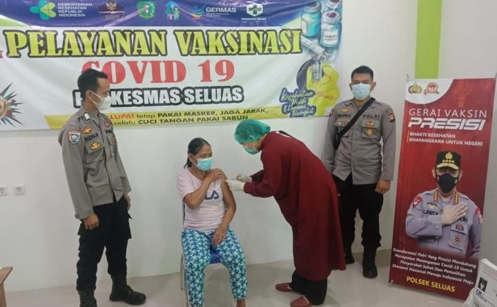 Senin tanggal 13 September 2021 Sekira pukul 09.00 Wib bertempat di Puskesmas Seluas tealah dilaksanakan vaksininasi covid -19 dalam Rangka percepatan vaksinasi yang dianjurkan pemerintah terhadap masyarakat Kecamata Seluas.Senin (13/09/2021). Kegiatan vaksinasi ini di berikan kepada Maayarakat Seluas yang sudah mendaftar di Polsek Seluas.kegiatan vaksinasi ini dalam rangka percepatan vaksinasi yang dianjurkan pemerintah mengadakan Vaksin..
