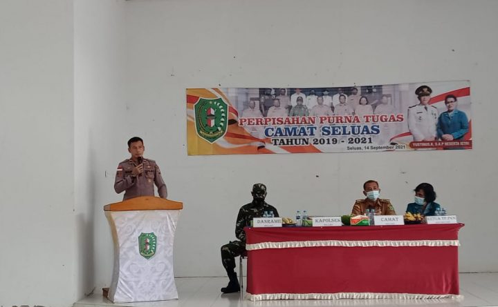 Polres Bengkayang – Kapolsek Seluas Ipda Suwandi, SH.,MH bersama dengan Danramil Seluas Serma Hamdani, menghadiri pelepasan purna tugas Camat Seluas. Selasa, (14/09/2021) pukul 09.30 wib. Bertempat di Aula Kecamatan Seluas, Kabupaten Bengkayang telah di laksanakan Pelepasan Purna tugas Camat Seluas Bpk Yustinus K. S. A. P dalam acara tersebut di hadiri oleh seluruh Pejabat Utama..