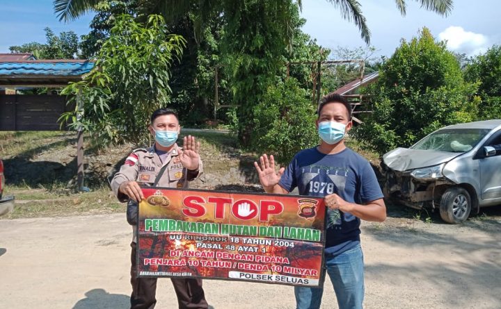 Polres Bengkayang – Upaya mencegah terjadinya kebakaran hutan atau lahan (karhutla) terus dilakukan oleh Anggota Polsek Seluas Brigadir Agus Srinaldi dengan memberikan imbauan serta sosialisasikan stop karhutla dengan menggunakan banner kepada warga binaan Desa Sahan Kecamatan Seluas, Kamis (23/09/2021). Brigadir Agus Srinaldi selalu mengajak warga agar bersama sama menjaga lingkungan sekitar dari bahaya karhutla dan..