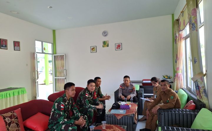 Kapolsek Siding Polres Bengkayayang Polda Kalbar Ipda Oman Kurnianto melaksanakan koordinasi dengan Kepala Puskesmas Siding Ajis Santoso A.Md.Kep dan Personil Satgas Pamtas Yonarmed16/TK terkait kelanjutan agenda Imunisasi JE di wilayah kecamatan Siding. Jumat(06/10/23). Pada Program Jumat Curhat kali ini Ipda Oman Kurnianto selaku Kapolsek Siding berkoordinasi dengan Stakeholder terkait dengan tujuan dilaksanakan koordinasi terkait Kelanjutan..
