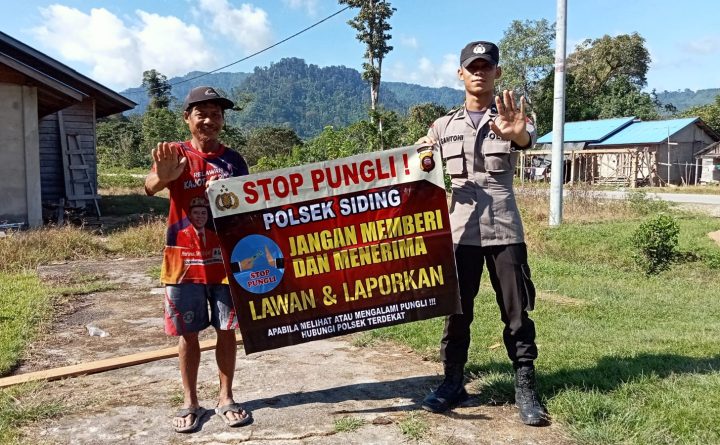 Personel Polsek Siding polres Bengkayang Polda Kalbar wujudkan pelayanan publik yang bebas dari praktek KKN lakukan himbauan Stop Pungli. Minggu (14/5/23) Seperti Pada himbaunnya terkait Pungli, Bripda Santoni Abui menyampaikan Sosialisasi Saber Pungli sesuai Perpres nomor 87 tahun 2016 tentang Satuan tugas Sapu bersih Pungutan liar. Hal ini sebagai upaya pencegahan berupa penyampaian himbauan dan..