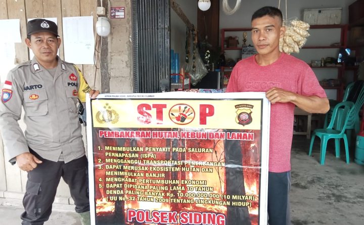 Polsek Siding Polres Bengkayang Polda Kalimantan Barat lakukan himbauan Stop Karhutla, Jumat (12/5/23). Bripka Bartolomeus sebagai Bhabinkamtibmas desa Tawang sambangi warga guna sampaikan informasi dan memberikan himbauan Stop Karhutla. Kegiatan Himbaun merupakan upaya kepolisian untuk pencegahan Karhutla hal ini disampaikan berupa edukasi terkait dampak buruk apabila hutan dan lahan terus di buka dengan cara di..