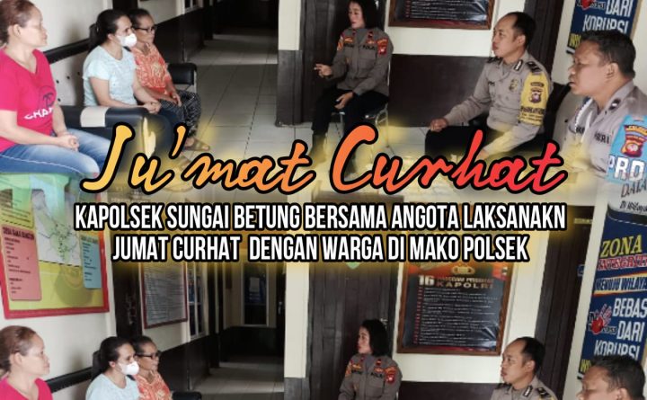 Kepolisian Sektor Sungai Betung kembali melaksanakan Kegiatan “Jum’at, curhat” adapun dalam agendanya kali ini bertujuan untuk menjalin silaturahmi dan sekaligus mendengarkan curhatan dari warga yang berada disekitar pasar Sungai Betung. Jum’at (10/2/2023) pagi. Masyarakat tampak antusias dalam kegiatan jumat curhat ini, serta banyak menyampaikan saran serta masukan yang membagun kepada Kapolsek. Selain menjalin silaturahmi, antara..