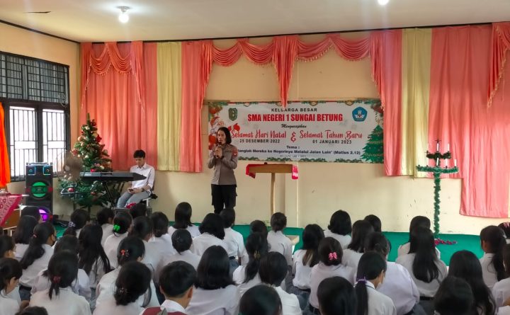 Senin, 9 Januari 2023 09:30 wib Kapolsek Sungai Betung IPDA Pariani, SH bersama Camat Sungai Betung menghadiri Ibadah Natal Bersama di sekolah SMA Negeri 1 Sungai Betung yang digelar di Aula SMA Negeri 1 Sungai Betung Desa Suka Maju Kecamatan Sungai Betung, Senin (09/01/2023). Hadir dalam kegiatan Natal bersama tersebut Pdt. Stepanus kuku, Camat Sungai..