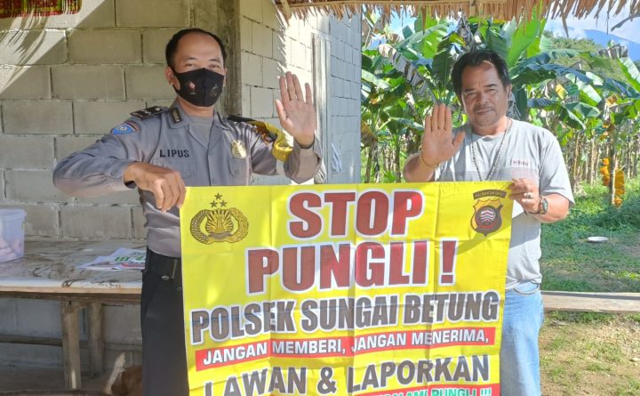 Kepolisian Sektor Sungai Betung Polres Bengkayang melalui Bhabinkamtibmas AIPDA LIPUS melakukan sosialisasi dan himbauan STOP PUNGLI kepada masyarakat di Desa Karya Bhakti Kec. Sungai Betung Kab. Bengkayang Senin (09/01/2023). Kegiatan yang dilakukan oleh Bhabinkamtibmas berjalan tertib dan lancar hingga selesai. Masyarakat menyambut baik sosialisasi dan himbauan yang dilakukan oleh Bhabinkamtibmas AIPDA LIPUS. Polsek Sungai Betung..