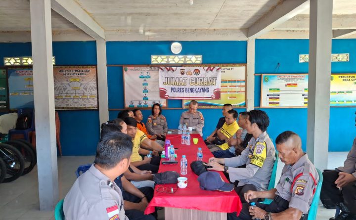 Bengkayang, Kalbar – Polres Bengkayang Polda Kalbar kembali melaksanakan kegiatan “Jum’at Curhat” yang kali ini berlangsung di Aula Kantor Desa Cipta Karya, Kecamatan Sungai Betung, Kabupaten Bengkayang, Jum’at (30/8/24) pagi. Jum’at Curhat ini dihadiri oleh berbagai unsur masyarakat dan aparatur desa, serta dipimpin oleh Kasat Binmas Polres Bengkayang, Iptu Luspen Simbolon, yang mewakili Kapolres..