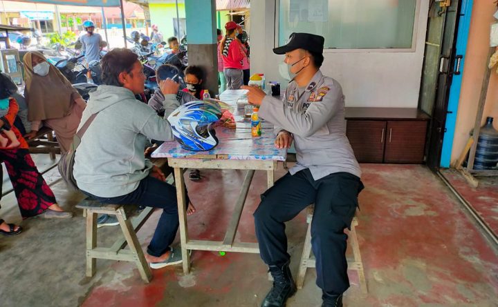 Anggota Polsek Sungai Raya Kepulauan Bripda Andre lakukan himbauan serta sosialisasikan penerapan protokol kesehatan Covid-19 guna menjaga dan memutus penyebaran Covid-19 beserta rekan lainnya tepatnya di Pasar Karimunting Jumat Pagi (11/06/2021). “Tugas kami sebagai pengemban tugas pembinaan masyarakat memberikan Sosialisasi dan himbauan agar masyarakat selalu menerapkan protokol kesehatan salah satunya menggunakan masker dan selalu mencuci..