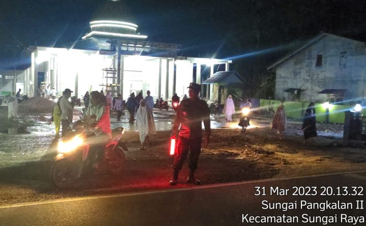 Polsek Sungai Raya – Polres Bengkayang – Polda Kalbar Pada hari ini Jum’at tanggal 31 Maret tahun 2023 sekira Pukul 20.22 Wiba, Kapolsek Sungai Raya Ipda Arijito Tri Susanto Hutagaol.S.H., bersama Personil Polsek Sungai Raya melaksanakan pengamanan dan juga Gatur di Masjid Kecamatan Sungai Raya dalam rangka Sholat Tarawih Bulan Suci Ramadhan. Kegiatan pengamanan tersebut..