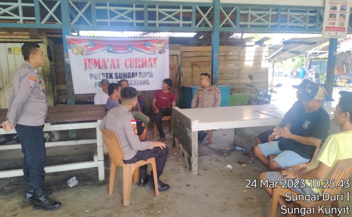 Polsek Sungai Raya – Polres Bengkayang – Polda Kalbar Pada hari ini Jum’at tanggal 03 Maret 2023 Kapolsek Sungai Raya IPDA ARIJITO TRI SUSANTO HUTAGAOL.S.H., bersama Personil Polsek Sungai Raya Sungai Raya melaksanakan Jum’at Curhat dengan Masyarakat Kecamatan Sungai Raya Kabupaten Bengkayang. Kegiatan Jum’at Curhat tersebut yang dilaksanakan oleh Polsek Sungai Raya yaitu Kapolsek Sungai..