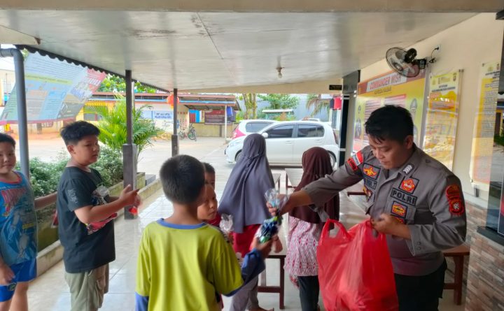 Polsek Sungai Raya – Polres Bengkayang – Polda Kalbar Pada hari ini Rabu tanggal 18 Januari 2023 Bripka Wim Wim Tania membagikan bingkisan kepada anak – anak di Polsek Sungai Raya Polres Bengkayang. Cintanya Personil Polsek Sungai Raya terhadap anak anak tersebut yang bernama Bripka Wim Wim Tania memberikan bingkisan kepada anak anak yang sedang..