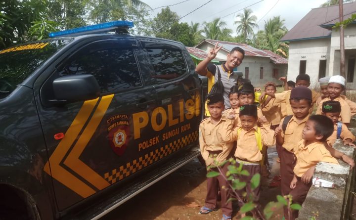 Polsek Sungau Raya – Polres Bengkayang – Polda Kalbar Pada hari Jum’at tanggal 09 Desember 2022, Kapolsek Sungai Raya IPDA ARIJITO TRI SUSANTO HUTAGAOL.S.H., melaksanakan patroli dengan Personil Polsek Sungai Raya, dan Kapolsek Sungai Raya pun menyempatkan waktunya menyapa anak-anak turun dari mobil Patrolinya. Kapolsek Sungai Raya pada saat itu sedang melaksanakan Patroli dengan Personil..